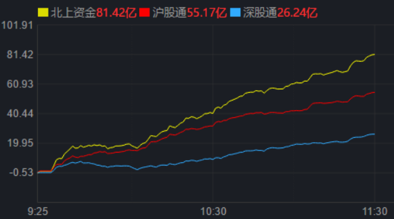 從資金面來看,11月29日上午,北上資金凈買入金額達81.42億元。
