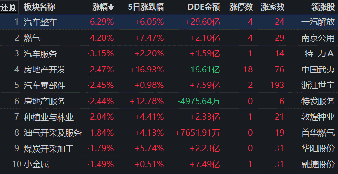 從早盤表現強勢的汽車整車行業看,截至11月30日11:30,該行業交易中的24只個股全線上漲,其中14只漲幅超5%。從資金流向看,該行業今天上午大單資金凈流入額達29.60億元,居行業第1位。