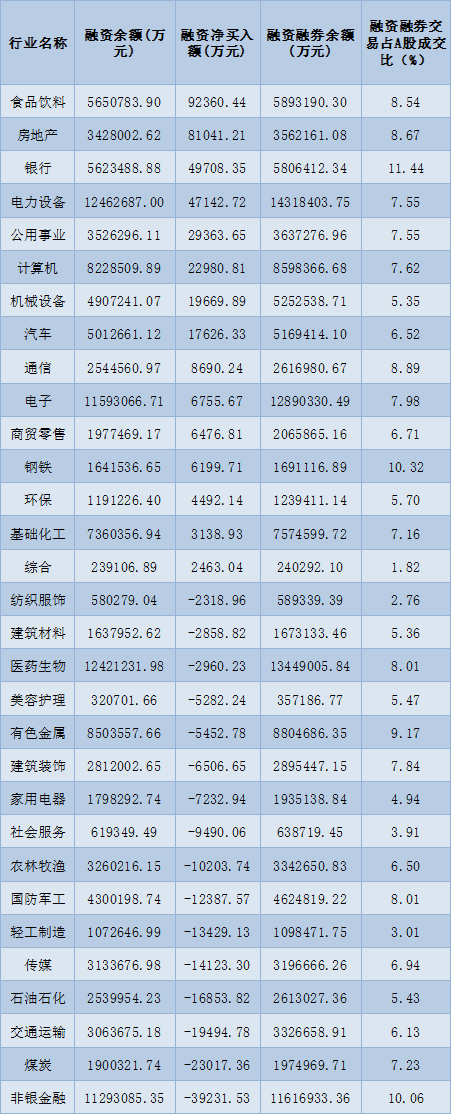 表:11月29日申萬一級行業兩融交易情況: