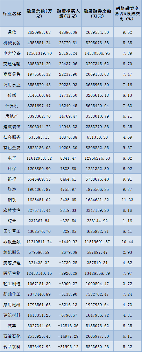 表:12月1日申萬一級行業(yè)兩融交易情況: