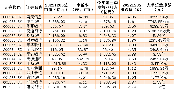 二級市場上,跨境支付概念股持續活躍。12月5日,超七成概念股上漲,中油資本漲停,招商銀行、平安銀行、宇信科技、南天信息漲幅超4%;值得一提的是,截至今日收盤,中油資本已經連續18個交易日實現上漲,總市值突破千億元。大單資金積極搶籌人民幣跨境支付系統(CIPS)直接參與者,招商銀行、平安銀行、工商銀行等6只銀行股獲大單資金凈額流入均超1億元,中國銀行、華夏銀行、交通銀行等大單資金凈流入均超5000萬元。