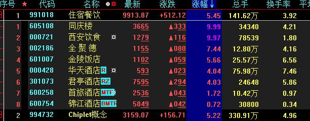 具體看,截至12月14日上午收盤,住宿餐飲板塊直線拉升,漲幅居首達5.45%。其中,西安飲食、同慶樓等概念股聯(lián)袂漲停。西安飲食三連板。