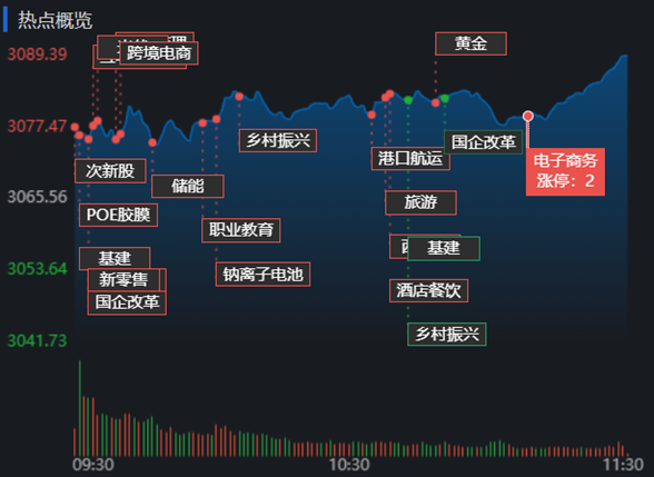 12月27日早盤,A股三大指數(shù)高開高走。截至上午11:30,上證指數(shù)漲0.78%,報(bào)3089.39點(diǎn);深證成指和創(chuàng)業(yè)板指漲幅分別為0.85%和0.75%;滬深兩市合計(jì)成交額4213.2億元??傮w來看,A股市場(chǎng)個(gè)股漲少跌多,有37只個(gè)股漲停,跌停股7只。