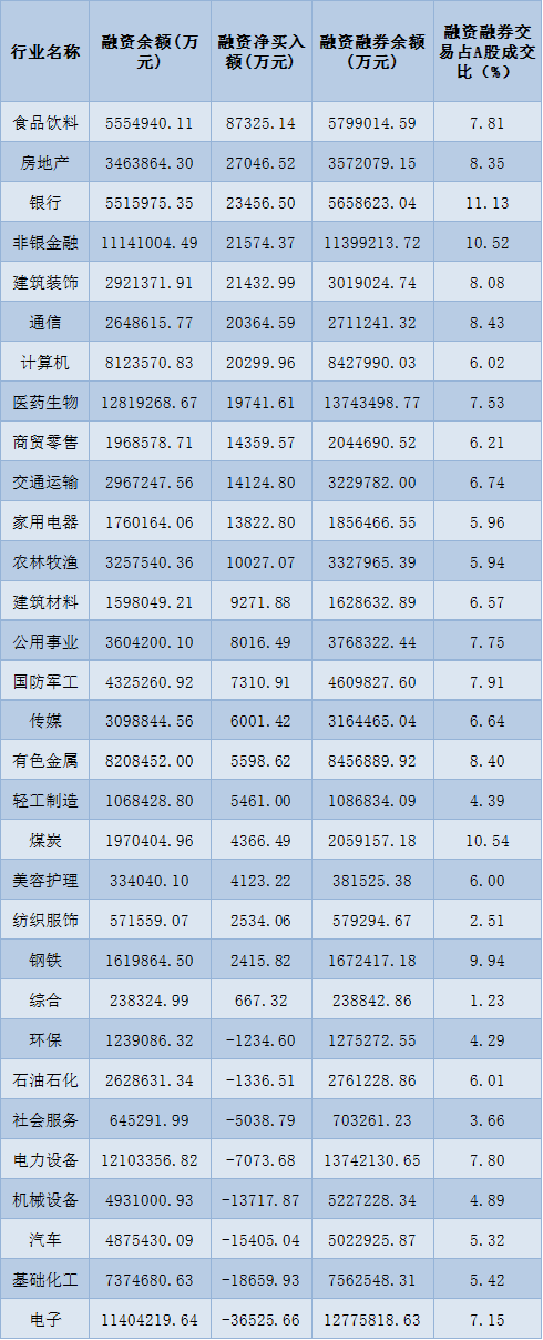 表:12月26日申萬一級(jí)行業(yè)兩融交易情況: