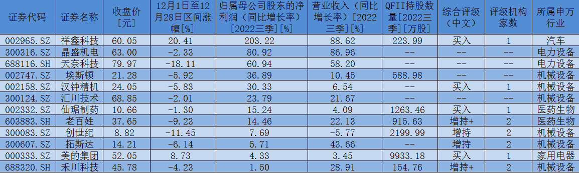 表:受10家及以上海外機(jī)構(gòu)調(diào)研公司中前三季度凈利潤(rùn)實(shí)現(xiàn)同比增長(zhǎng)公司一覽