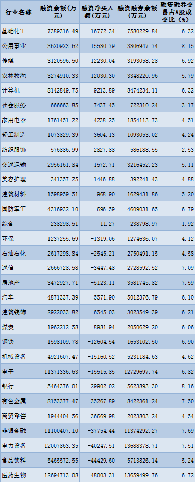 表:12月28日申萬一級(jí)行業(yè)兩融交易情況: