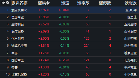 同花順行業(yè)方面,截至12月29日11:30,76類行業(yè)中39類上漲,占比51.32%,其中,酒店及餐飲行業(yè)漲幅居首,達(dá)3.97%,此外,醫(yī)藥商業(yè)、生物制品、醫(yī)療服務(wù)、化學(xué)制藥等4類醫(yī)藥相關(guān)板塊漲幅也均超2%。下跌方面,房地產(chǎn)服務(wù)跌幅居首,達(dá)2.17%。