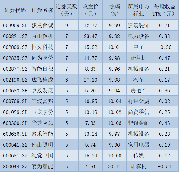 漲停股方面,今日有53只個股以漲停價報收,其中,有14只個股,股價已連續上漲超過5個交易日;跌停方面,有29只個股跌停價報收。從申萬一級行業看,機械設備行業漲停股數量居首,為12只,計算機與電子緊隨其后,漲停股數均為5只。