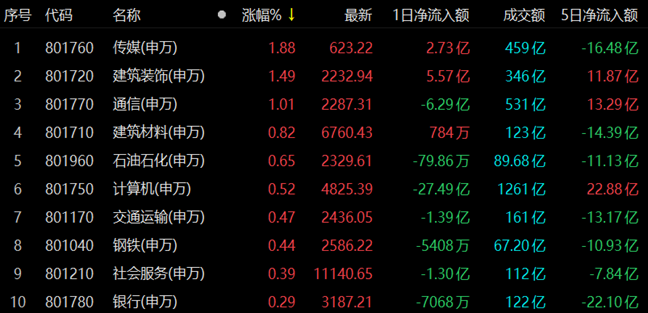 今日,A股三大指數(shù)震蕩回落,量能小幅增長,北上資金凈買入,傳媒等3類申萬一級行業(yè)漲幅超1%。業(yè)內(nèi)人士表示,在利好因素的帶動下,短期內(nèi)A股有望延續(xù)震蕩上行趨勢。