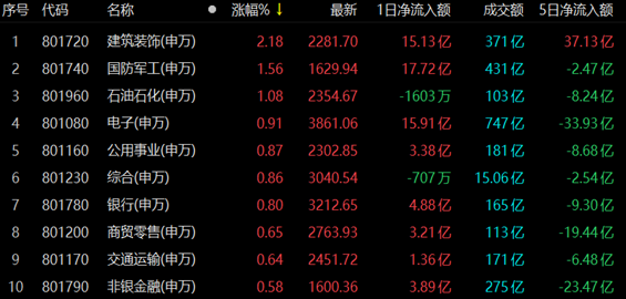 對于A股走勢,金百臨咨詢資深分析師秦洪對《證券日報》記者表示,周五A股市場出現震蕩中重心上移的態勢。中字頭概念股漲幅居前,尤其是一些大市值的央企建筑股出現了放量揚升的K線組合,成為各路資金競相配置的焦點品種,從而釋放出較強的做多能量,推動著上證綜指等主要股指再度揚升。看來,多頭尋找到新的領漲先鋒,短線A股仍將延續強勢格局。