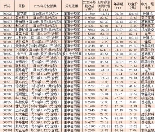 隨著2022年年報披露,A股公司分紅方案也成為投資者的關注點。同花順數據顯示,截至3月3日收盤,A股已有50家公司發布了2022年年報,30家公司計劃現金分紅,擬分紅總額達51.43億元。其中,13家公司過去四年(2019年至2022年)連續實施了現金分紅。