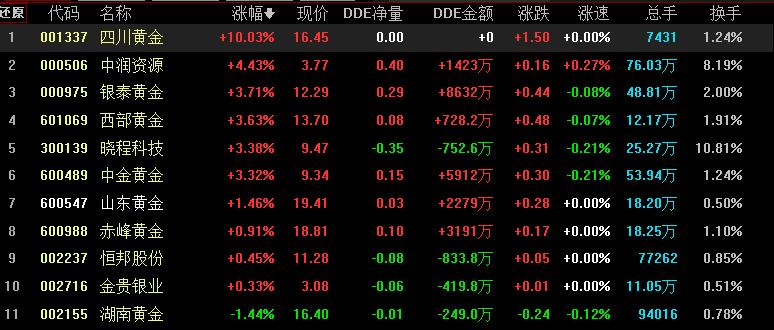 具體看,截至3月10日上午收盤,貴金屬板塊漲幅居前,達2.75%。其中,四川黃金再度漲停。