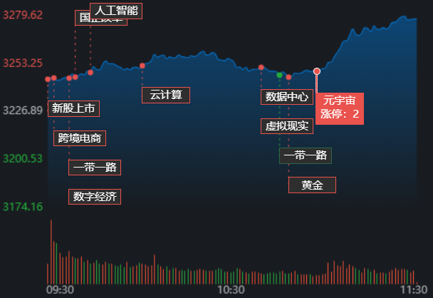 3月17日早盤,A股三大指數高開,滬深主板指數表現強勢。截至上午11:30,上證指數漲1.58%,報3278.01點;深證成指和創業板指漲幅分別為1.25%和0.64%;滬深兩市成交額合計5824.8億元,較前一交易日同期增長17.37%。總體來看,A股市場個股漲多跌少,漲跌停方面,有30只個股漲停,跌停股3只。