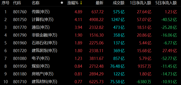漲停股方面,今日有36只個股以漲停價報收,其中,有11只個股,股價已連續上漲超過3個交易日;跌停方面,有3只個股跌停價報收。從申萬一級行業看,計算機漲停股數量居首,為5只,商貿零售和電子緊隨其后,漲停股數均為4只;跌停的3只個股分別屬于電子、醫藥生物和紡織服飾行業。