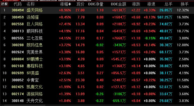 具體看,截至3月24日上午收盤,云游戲板塊漲幅居首達2.48%。其中,盛天網絡、湯姆貓等概念股漲幅均超8%。