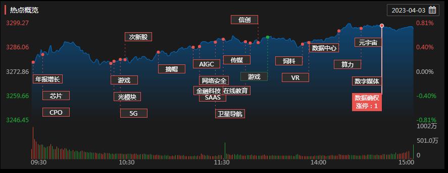4月3日,A股市場放量上漲,實現了四月開門紅行情。三大股指全線反彈,滬指距離3300點僅一步之遙;兩市成交額超1.25萬億元,創9個月新高。有機構認為,A股有望演繹震蕩中攀升的“小陽春”行情。