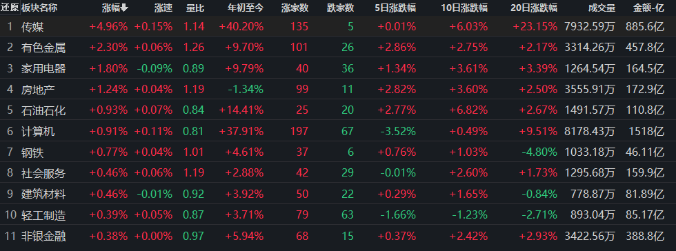 4月11日,A股三大指數(shù)尾盤拉升漲跌互現(xiàn),滬指3300點失而復(fù)得,A股成交金額連續(xù)6個交易日超萬億元。傳媒板塊領(lǐng)漲,多只傳媒股漲停。