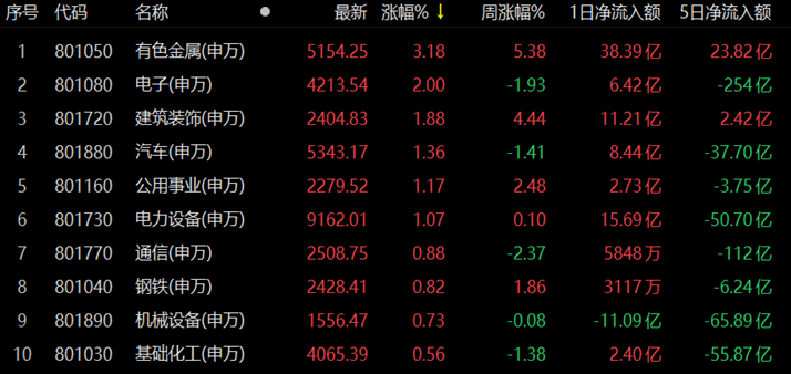 有色金屬行業(yè)指數(shù)漲超3%