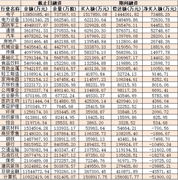 表:4月19日申萬(wàn)一級(jí)行業(yè)兩融交易情況: