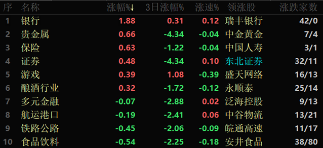 從早盤表現強勢的銀行行業看,交易中的42只成份股全線上漲,其中,有3只個股漲幅超5%。資金方面,有2.29億元大單資金凈流入該行業,居各行業第2位。