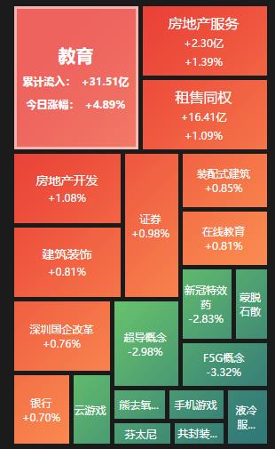 具體看,截至5月5日上午收盤,教育板塊漲幅居首達4.89%。其中,科德教育20CM漲停,創業黑馬、學大教育、國新文化等多只概念股漲幅均超9%。