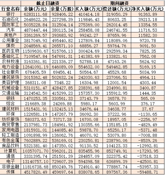 表:5月10日申萬一級行業(yè)兩融交易情況: