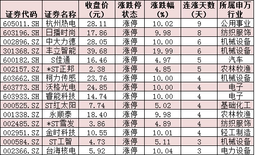 表:連續(xù)上漲3日且今日收盤漲停個股情況: