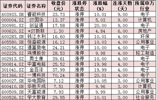 表:連續上漲3日且今日收盤漲停個股情況: