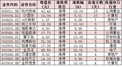 表:連續(xù)上漲4日且今日收盤(pán)漲停個(gè)股情況: