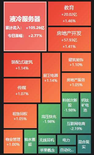 具體看,截至6月6日上午收盤,液冷服務器板塊漲幅居首,達2.77%,資金凈流入達105.26億元。其中,英特科技、高瀾股份等概念股漲幅均超10%。