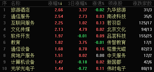 從早盤表現強勢的旅游酒店行業看,交易中的34只成份股中有31只上漲,其中,有5只個股漲幅超5%。資金方面,有6514萬元大單資金凈流出該行業。