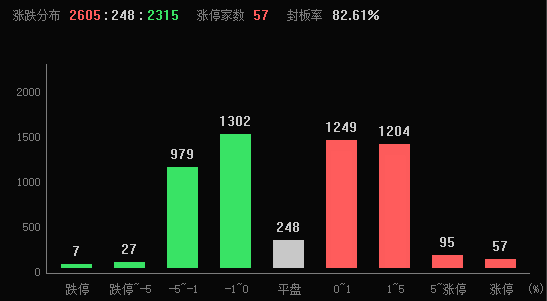 6月7日早盤,A股三大指數震蕩分化,滬市表現相對強勢。截至上午11:30,上證指數漲0.02%,報3195.88點,深證成指和創業板指跌幅分別為0.37%和1.32%;滬深兩市成交額合計5022.5億元。總體來看,A股市場個股漲多跌少,有2605只上漲,2315只下跌,漲跌停方面,有57只個股漲停,跌停股7只。