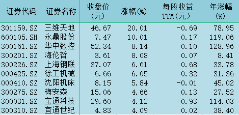 表:今日工業互聯網概念板塊漲幅排名前十個股一覽