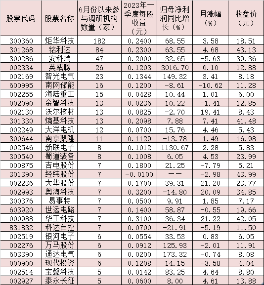 近期,機構對充電樁概念股的關注度逐步上升。數據顯示,6月份以來,截至6月20日,共有28家充電樁板塊上市公司獲機構密集調研,其中,炬華科技期間參與調研的機構家數居首,達到182家,銘利達、安科瑞、英威騰、智光電氣等4家公司期間也均受到20家及以上機構扎堆調研。此外,包括南網儲能、海陸重工等23家公司期間也獲5家及以上機構集中調研。