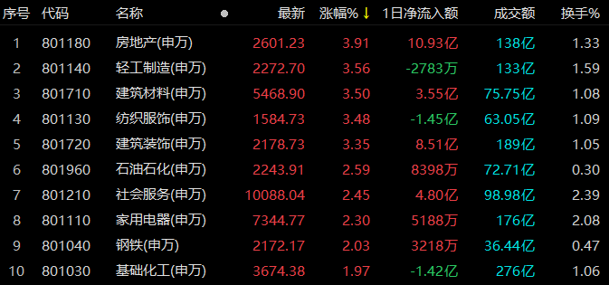 6月27日,行業(yè)漲多跌少,從31個(gè)申萬一級(jí)行業(yè)看,全線上漲,房地產(chǎn)行業(yè)漲幅居首,達(dá)3.91%,大單資金凈流入10.93億元,此外,包括輕工制造和建筑材料等在內(nèi)的4個(gè)行業(yè)漲幅均超3%。