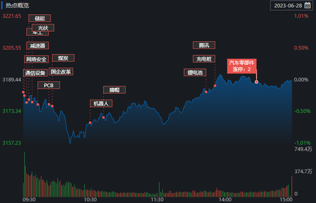 6月28日,滬指早盤出現快速下跌,最低至3157.12點,隨后企穩回升,午盤后一度翻紅。最終,上證指數平盤報收3189.38點;深證成指跌0.47%報10926.32點,創業板指跌0.44%報2182.10點。A股合計成交額8897.09億元,較前一交易日增長5.63%;北向資金全天凈賣出40.72億元;其中滬股通凈流出25.83億元,深股通凈流出14.89億元。