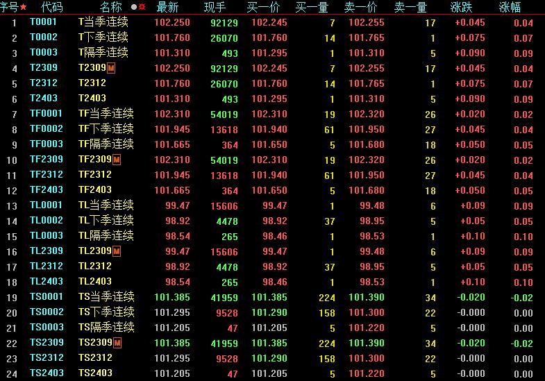 周五,國債期貨多數小幅收漲,30年期主力合約漲0.09%,10年期主力合約漲0.04%,5年期主力合約漲0.02%,2年期主力合約跌0.02%。全周來看,30年期主力合約周漲0.37%,10年期主力合約周漲0.18%,5年期主力合約周漲0.15%,2年期主力合約周漲0.04%。