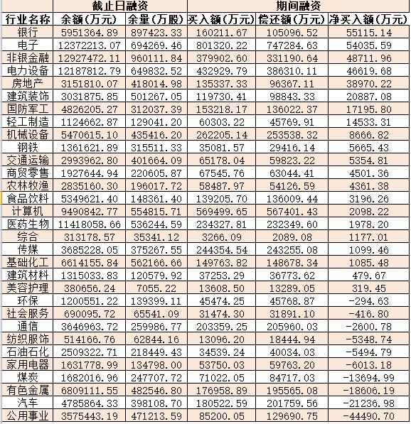表:9月5日申萬一級行業(yè)兩融交易情況: