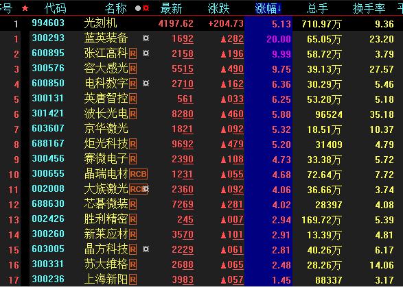 具體看,截至9月8日上午收盤,光刻機板塊異軍突起,漲幅居首達5.13%。其中,藍英裝備20CM漲停,張江高科漲停。