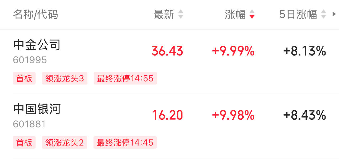值得注意的是,券商板塊異動頻頻,今日漲幅達(dá)2.82%,板塊內(nèi)個股全部實現(xiàn)上漲。其中,中金公司、中國銀河A股雙雙漲停。截至記者發(fā)稿,兩家公司H股漲幅均超10%。此外,西部證券、信達(dá)證券A股漲幅也均超5%。