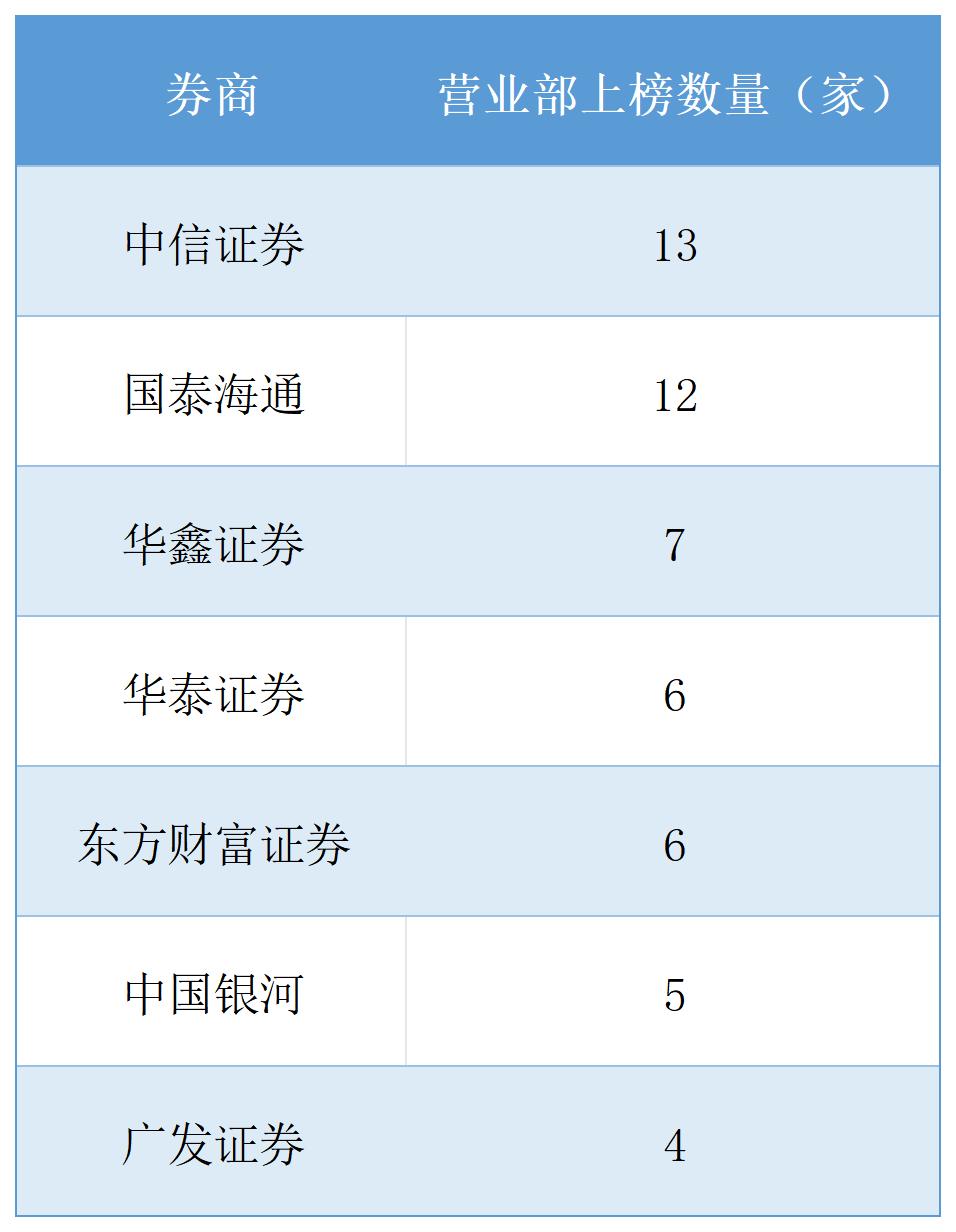 縱觀百強營業部席位分布,中信證券旗下營業部有13家上榜,數量居首;其次為國泰海通,旗下有12家營業部上榜;華鑫證券有7家營業部上榜,華泰證券、東方財富證券均有6家營業部上榜。