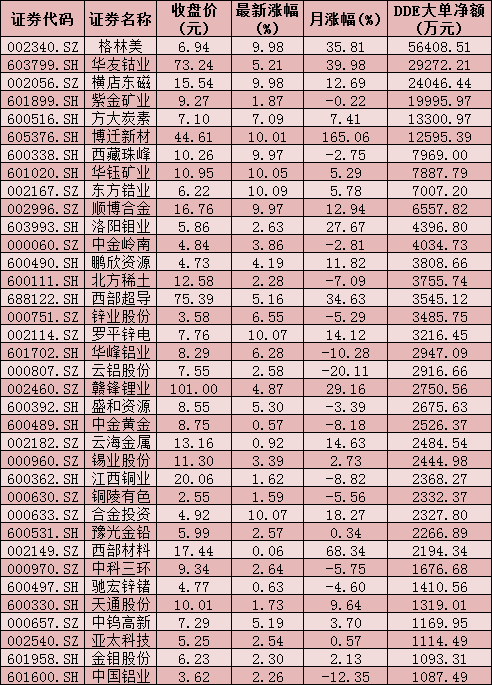 的確,市場資金已悄然涌入有色金屬概念股。《證券日報》記者根據(jù)同花順統(tǒng)計發(fā)現(xiàn),周三,有色金屬行業(yè)整體資金凈流入達19.28億元。其中,格林美(5.64億元)、華友鈷業(yè)(2.93億元)、橫店東磁(2.4億元)、紫金礦業(yè)(1.99億元)、方大炭素(1.33億元)、博遷新材(1.26億元)等個股,資金凈流入均超1億元,合計資金凈流入達15.56億元,備受資金熱捧。