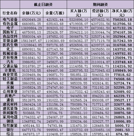從行業分布來看,今年以來截至1月8日,在28個申萬一級行業中,全部行業獲融資凈買入。其中,電氣設備行業最受融資客青睞,融資凈買入額達75.03億元;緊隨其后的是有色金屬、電子等行業,融資凈買入額均超40億元,分別為51.27億元和41.71億元。由此計算,上述三行業融資客合計凈買入額達168.01億元。