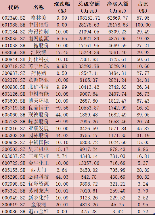 五、周一(3月1日)龍虎榜機構動向