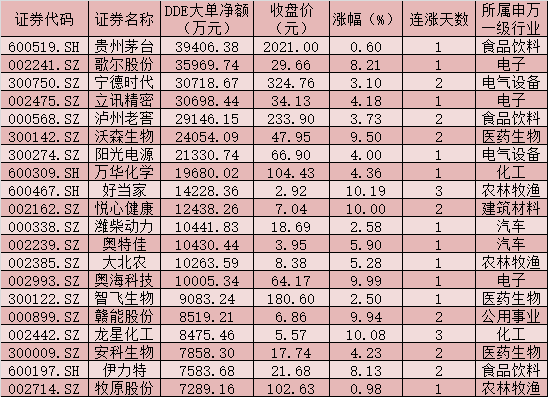 一、周二(4月13日)DDE大單資金凈買(mǎi)入TOP20