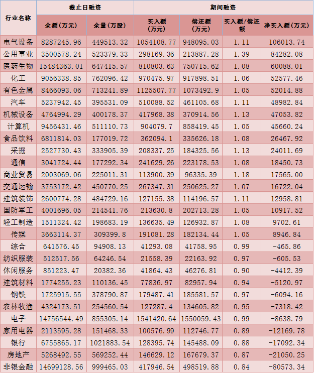 六、7月13日申萬(wàn)一級(jí)行業(yè)兩融交易情況