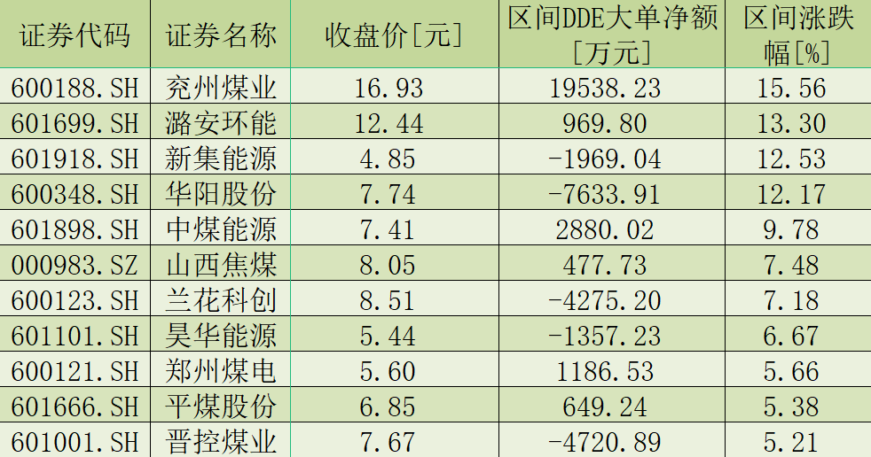 煤炭開(kāi)采加工板塊的上漲行情也與資金面因素相關(guān)。本周以來(lái),共有3.79億元市場(chǎng)大單資金搶籌該板塊19只個(gè)股。個(gè)股方面,兗州煤業(yè)最受大單資金青睞,共獲得19538.23萬(wàn)元大單資金凈買入;露天煤業(yè)(4647.03萬(wàn)元)、中煤能源(2880.02萬(wàn)元)、盤江股份(2019.96萬(wàn)元)、鄭州煤電(1186.53萬(wàn)元)、上海能源(1105.91萬(wàn)元)等5只個(gè)股也獲得超1000萬(wàn)元大單資金凈買入。
