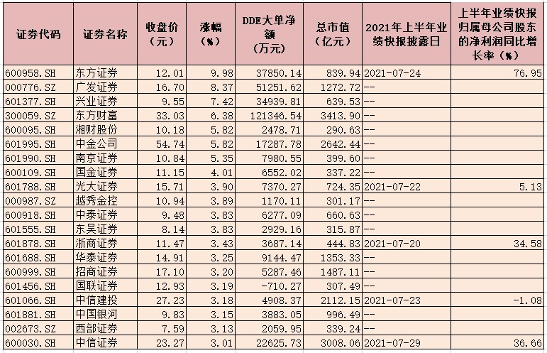 業績方面,證券行業今年呈現了較好的業績表現。截至8月2日收盤,有部分證券公司已經發布了半年報或者是上半年業績快報,其中,東方財富已經發布半年報,該公司上半年凈利潤同比增長106.08%,有12家公司發布了上半年業績快報,11家公司上半年實現凈利潤同比增長,其中,方正證券、東方證券、海通證券、國泰君安等4家公司上半年凈利潤同比增幅均超40%。