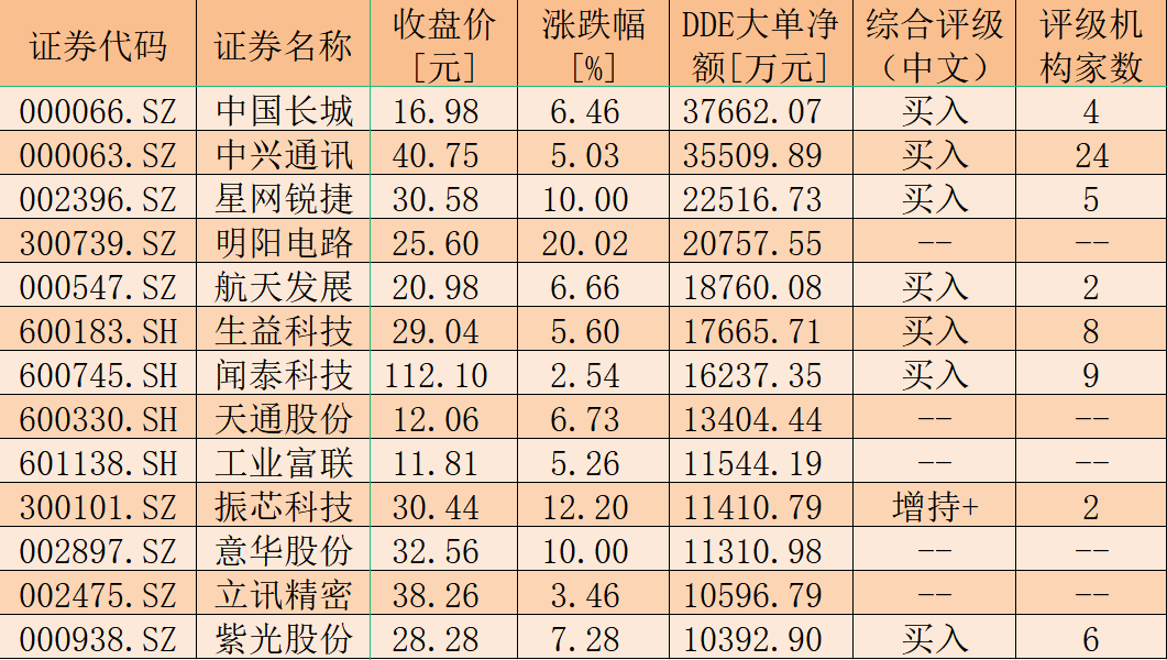 當然,5G板塊的行情也與資金面因素相關(guān)。今日,5G板塊大單資金凈買入額為6.98億元,共有120只個股呈現(xiàn)大單資金凈買入狀態(tài),合計凈買入金額達到42.87億元。具體來看,中國長城(37662.07萬元)、中興通訊(35509.89萬元)、星網(wǎng)銳捷(22516.73萬元)、明陽電路(20757.55萬元)、航天發(fā)展(18760.08萬元)等13只個股獲大單資金凈買入額均超1億元;數(shù)碼視訊(9936.32萬元)、滬電股份(9222.81萬元)、東方通(8246.01萬元)、北斗星通(6719.04萬元)、華工科技(6675.64萬元)等51只個股獲大單資金凈買入額超1000萬元。