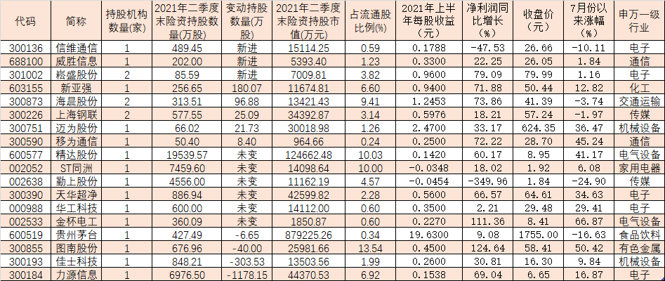 表:今年二季度獲險(xiǎn)資持倉個(gè)股一覽